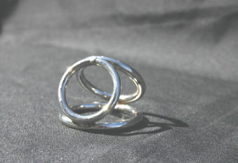 This product is made of 3 stainless steel rings welded together that separate the cock and balls. Neatly polished to a high shine. Comes in two sizes: the larger is 2"/1.75"/1.50", and the slightly smaller, 1.75"/1.50"/1.25".